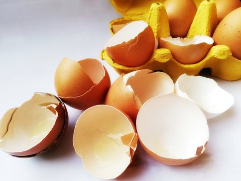 Pile of empty broken walnut shells isolated on white background. Biodegradable food waste and peelings. Nut crop concept.