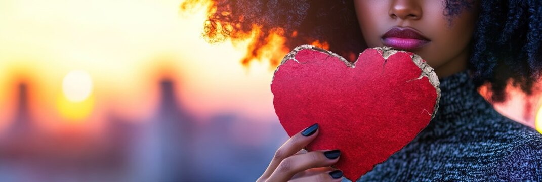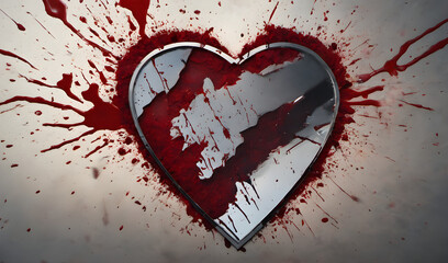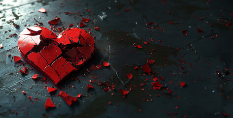 Shattered red heart on dark background with room for text