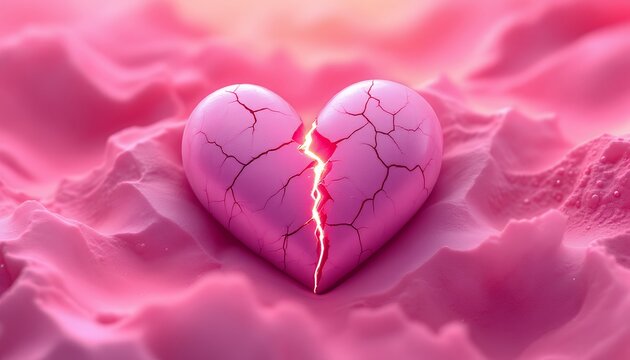 A Broken Heart on Pink Sand: A Visual Metaphor for Heartbreak and Loss