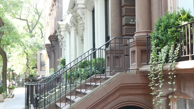 front steps of New York brownstone apartment buildings