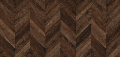 Dark brown wooden parquet floor texture in classic herringbone pattern. This seamless repeating wood grain offers warm, natural aesthetic for interior design, flooring, and architectural backgrounds.