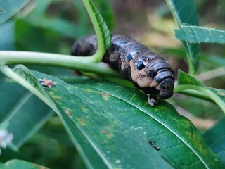 macro of caterpillar on leaf