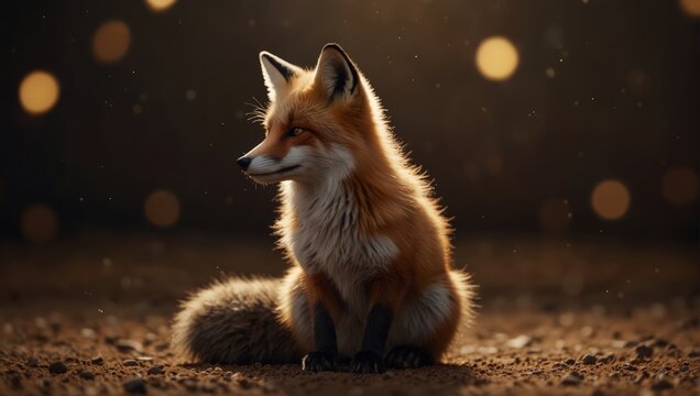 A cartoon fox sitting on a brown background with its eyes closed,.