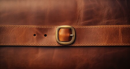 A close up of a brown leather bag with an old fashioned buckle. Generative AI.