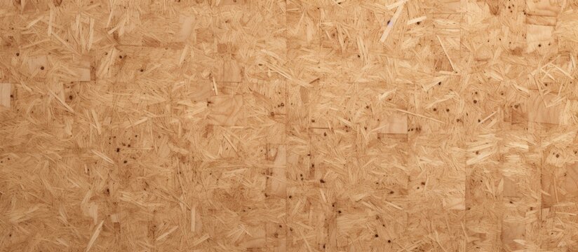 Particleboard, chipboard background with grainy texture of particle presses wooden panel or OSB Oriented strand board in light brown cream sepia color