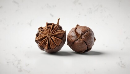 Single allspice berry with a brown spot isolated on white background, single fruit, spice, white background