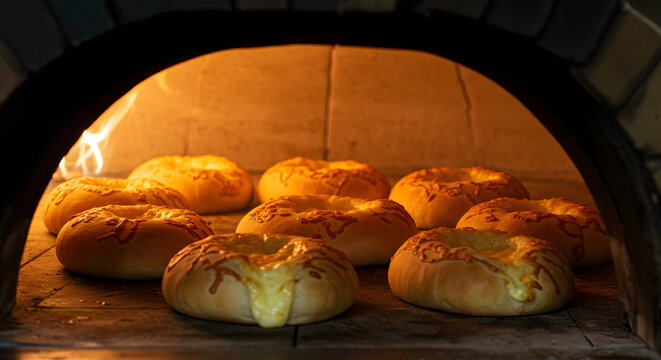 Homemade cheese bread in rustic basket