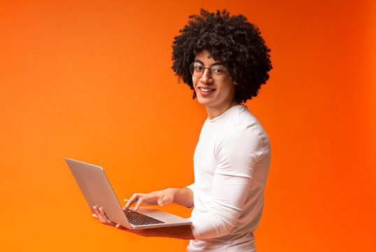 Young woman working with a laptop. Female freelancer connecting to internet via computer. Businesswoman at work