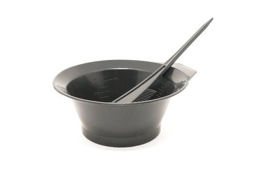 Bowl with a brush, for hair dye. Isolated on white background