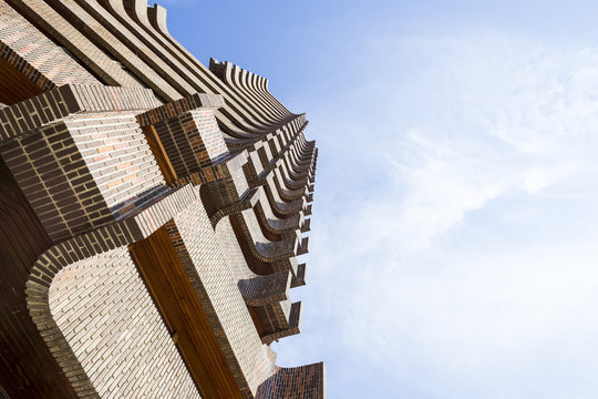 Brutalist and African modernist building in Dakar, Senegal on a cloudy afternoon - Landscape shot