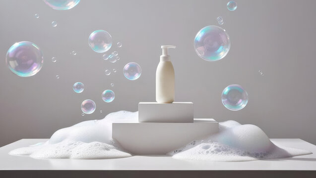 podium with soap bubble bath
