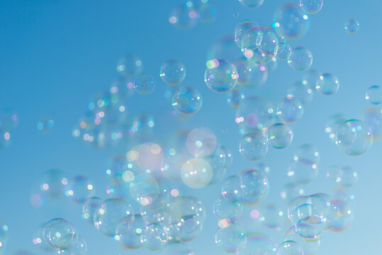 Whimsical soap bubbles with ethereal bokeh effect