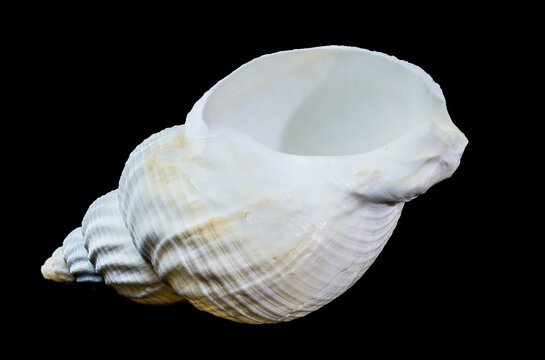 sea snail shell of raw whelk sea snails bulot bulots isolated on white background macro shot french delicatessen seafood empty seashell of buccinum undatum