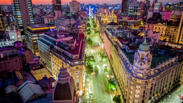 aerial night skyscraper cityscape of buenos aires argentina microcentro