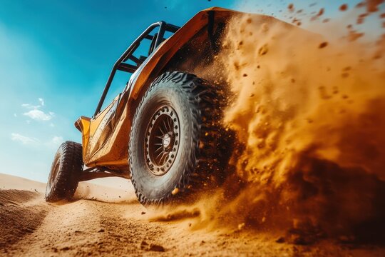 Dune buggy racing action shot desert landscape high-speed photography