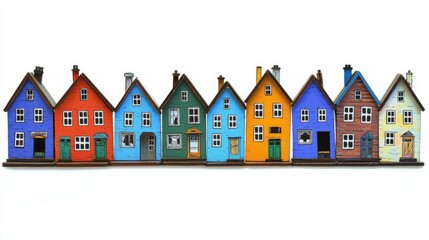 Vibrant Collection of Wooden Miniature Houses on a Crisp White Background