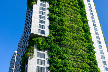 Modern urban architecture with vertical garden on high-rise building