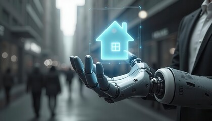 Construction technology concept. Engineer working on wooden pland model building and icon network connection, intelligence technologies and innovation.