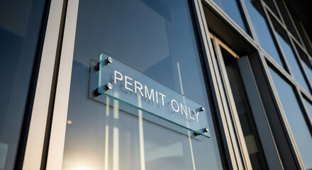 Permit Only Sign Affixed To Modern Office Building Window Glass Exterior