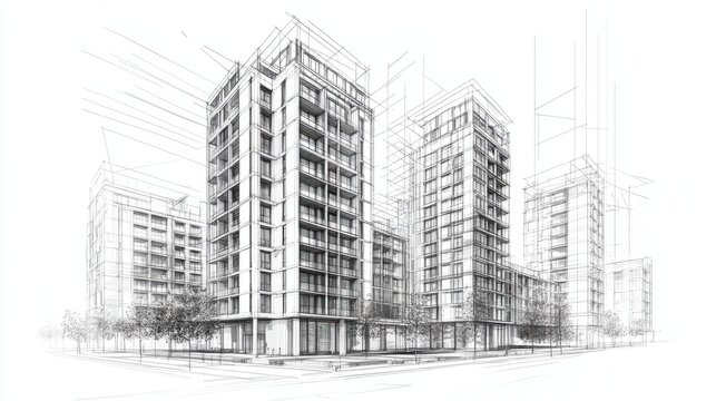 Dense urban landscape with high-rise residential buildings