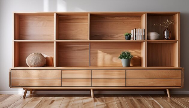 Modern Wooden Wall Unit with Built in Shelving and Drawers