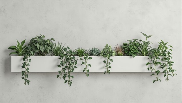 Stylish gray wall adorned with trailing philodendrons and succulents in built in planters