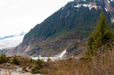 Nugget Falls at the base of Bullard Mountain, next to the Mendenhall Glacier near Juneau, Alaska