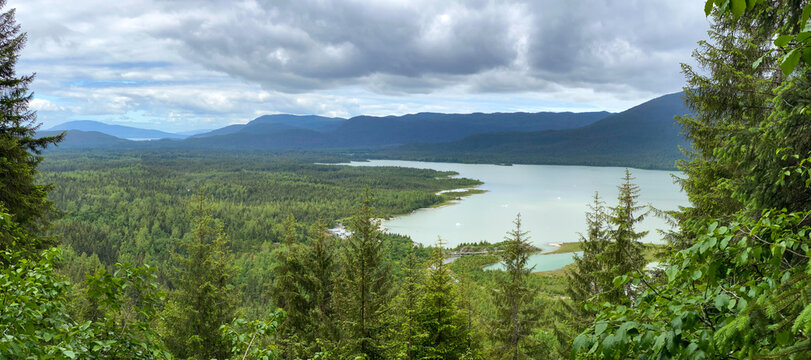 Mendenhall Lake in Mendenhall Valley at terminus of Mendenhall Glacier, near Juneau, Alaska in Coast Mountains. Mendenhall Glacier Recreation Area of the Tongass National Forest.