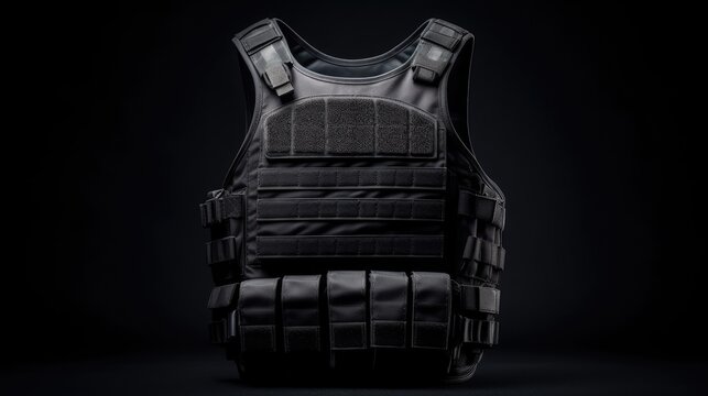 Black tactical armor vest with molle webbing featuring magazine pouches