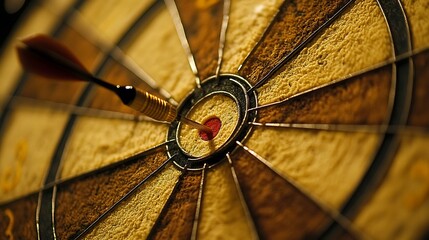 Dart embedded in the bullseye of a dartboard.