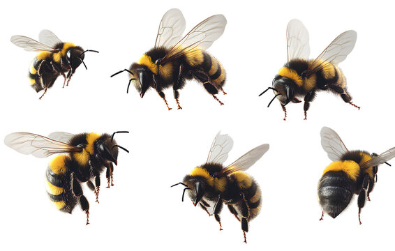Realistic photo of bumblebees flying, transparent background