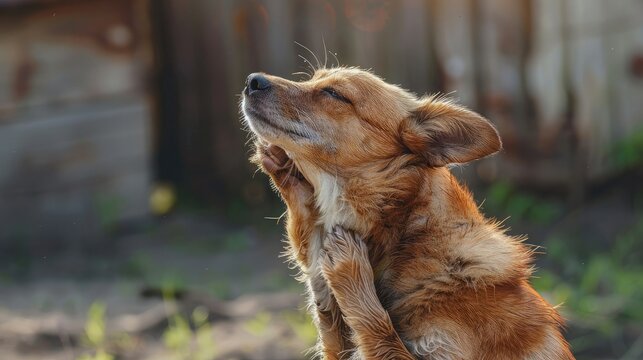 brown dog scratching itself, self hygiene in wildlife of an abandoned bummer