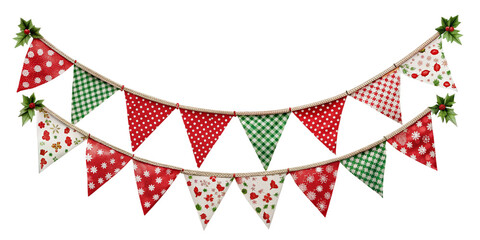 christmas bunting flag isolated on transparent background, element remove background, element for design