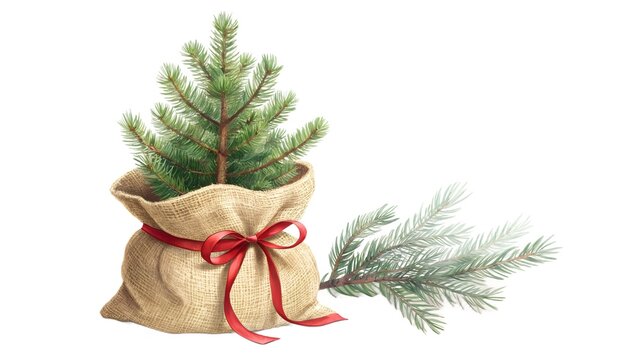Young Plant in a Burlap Sack isolated on transparent baackground