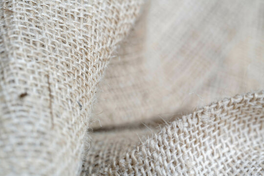 This is a close-up image of burlap fabric showcasing its coarse texture and woven pattern with focus on the overlapping layers.
