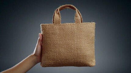 Organic textile bag isolated on white, hessian tote, nobody single object. Recycled textile, product package.Blank.