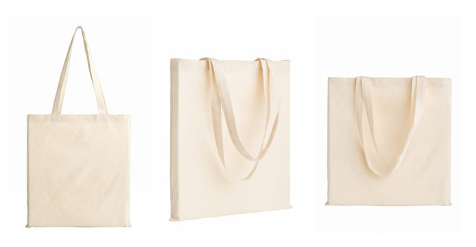 Mockup tote eco bag canvas for shopping. Isolated over grey background.