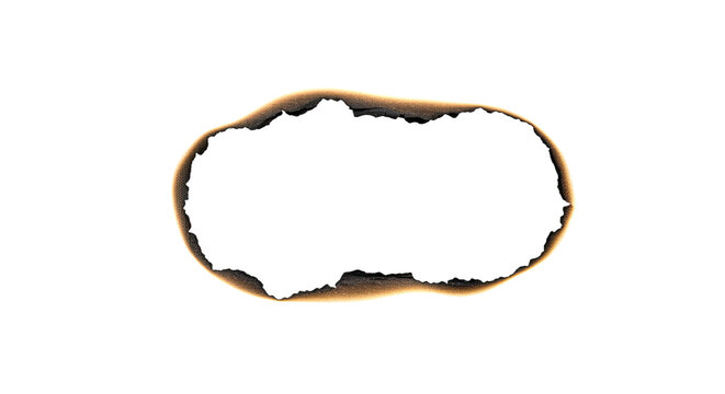 Burnt Paper Effect – Scorched Border: A cutout with a burnt paper effect, featuring a scorched and charred border, isolated on a white background.