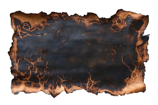 Burned and charred paper with rough edges isolated on a transparent background