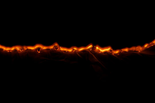 Hand holds burning paper against a black backdrop with flames and smoke clearly visible
