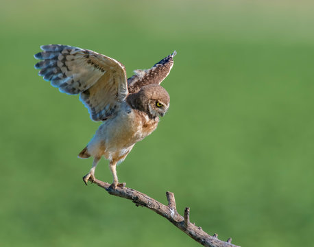 Young Burrowing Owl learning to fly