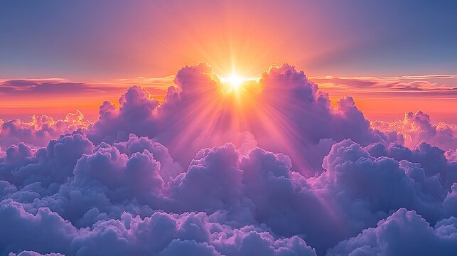 A bright, golden light bursts through dark clouds, creating a dramatic and powerful scene in the sky