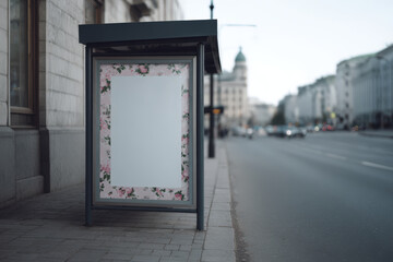 bus schedule displayed against delicate floral pattern background featuring blurred white text bars with ar times