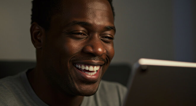 Elderly Hand Navigating Digital Financial Graphs on Tablet in Dimly-Lit Setting