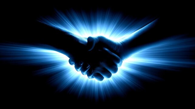 Symbolic handshake signifying partnership. Abstract Futuristic Business Background