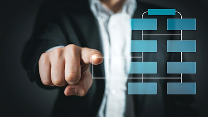 Business professional interacts with digital document icons on a virtual interface showcasing data management and workflow automation in a modern technology environment for enhanced productivity