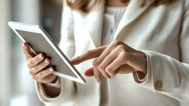 A well-dressed individual interacts with a tablet device, highlighting the integration of technology in modern professional environments, showcasing daily routines and tasks.