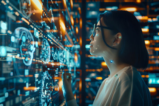 Experience cutting-edge technology with this dynamic digital interface, showcasing futuristic data visualization and interactive controls for ultimate efficiency.