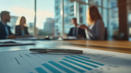Business professionals analyzing data charts in office setting