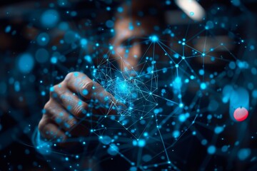 A professional examines digital analytics through an interactive screen, showcasing vital statistics and graphs, emphasizing the integration of technology in data analysis for informed decision-making